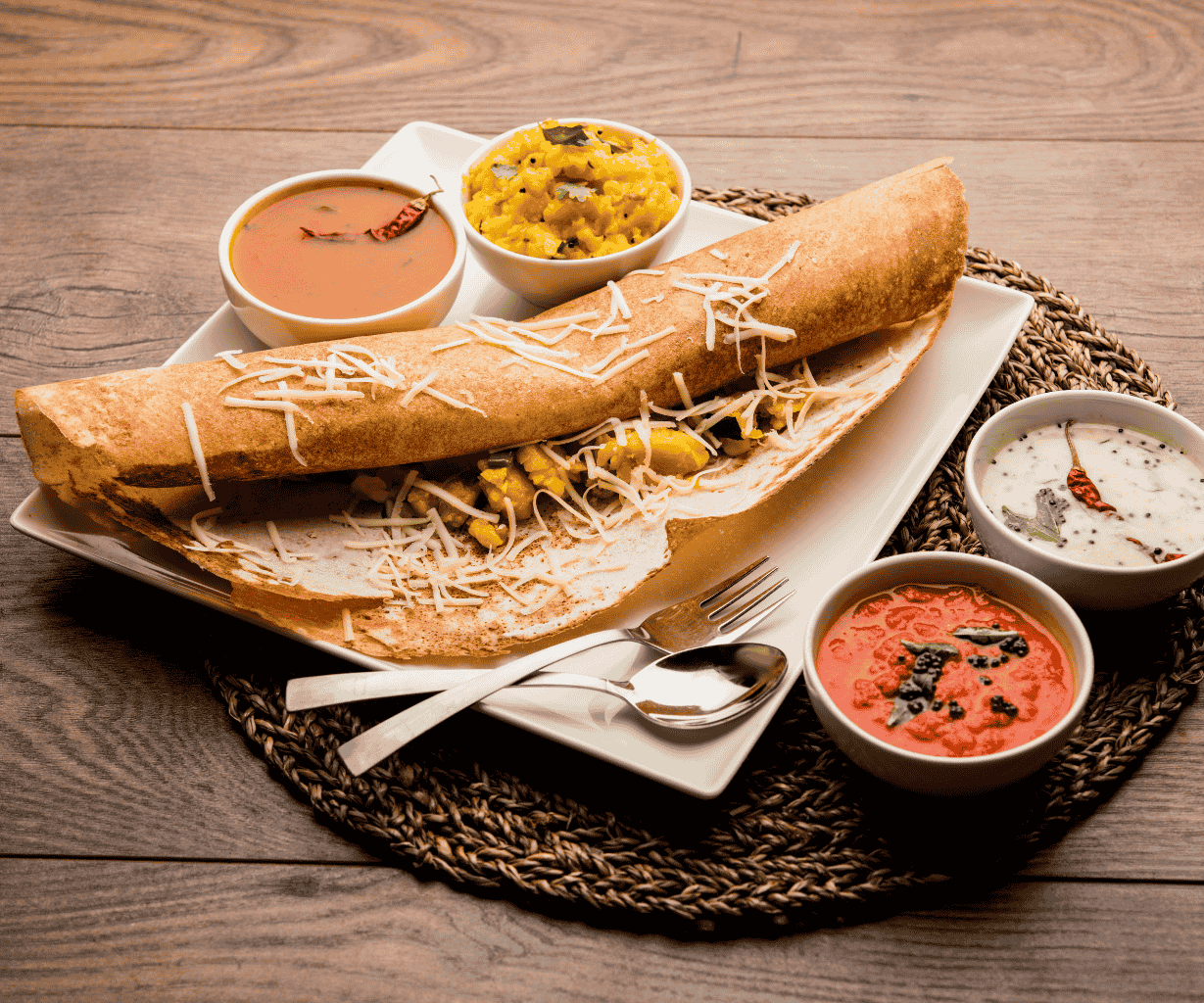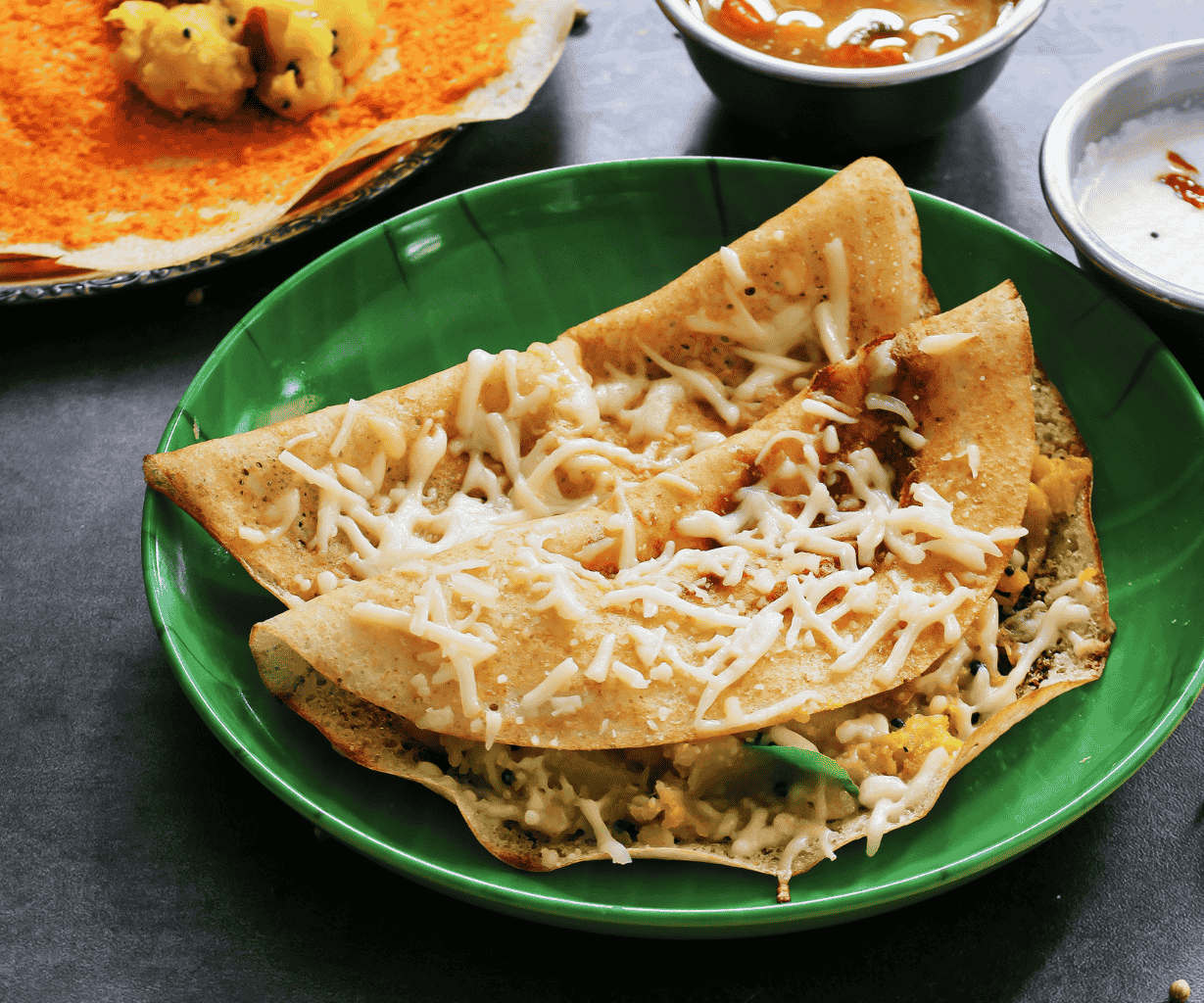 "A crispy dosa oozing with melted cheese – the ultimate desi comfort with a cheesy twist."